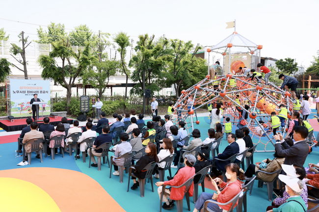 구는 지역 내 아이들이 안심하고 마음껏 뛰어놀 수 있도록 노후된 놀이·휴게시설, 바닥, 녹지대를 정비하고 기존 공간을 전면 재배치해 넓고 쾌적한 공간으로 다시 만들었다.
