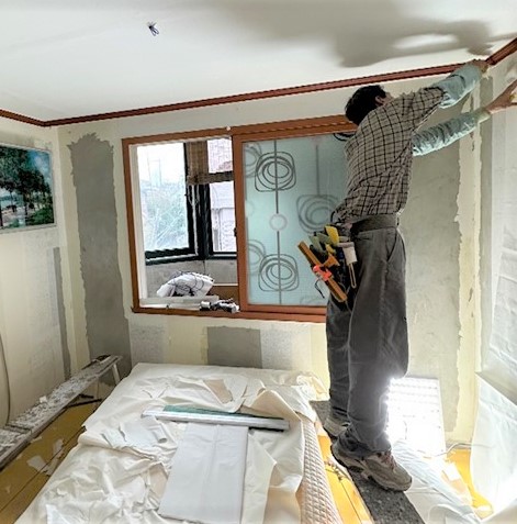 `주택 개보수`로 집 수선을 진행하고 있는 모습-도배